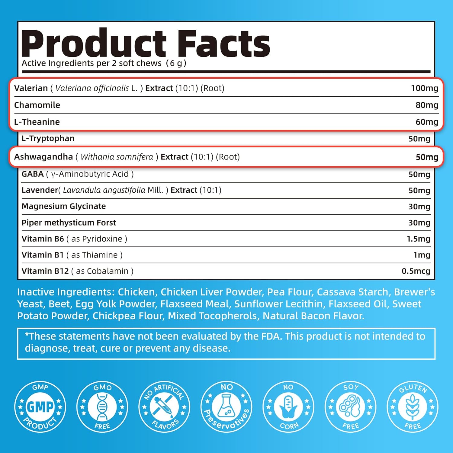 Advanced Relaxation Blend: Our calming supplements for dogs features Valerian Root, Chamomile and L-Theanine working with GABA and Ashwagandha. This natural combination helps support emotional balance and composure without artificial sedatives for daily wellness.