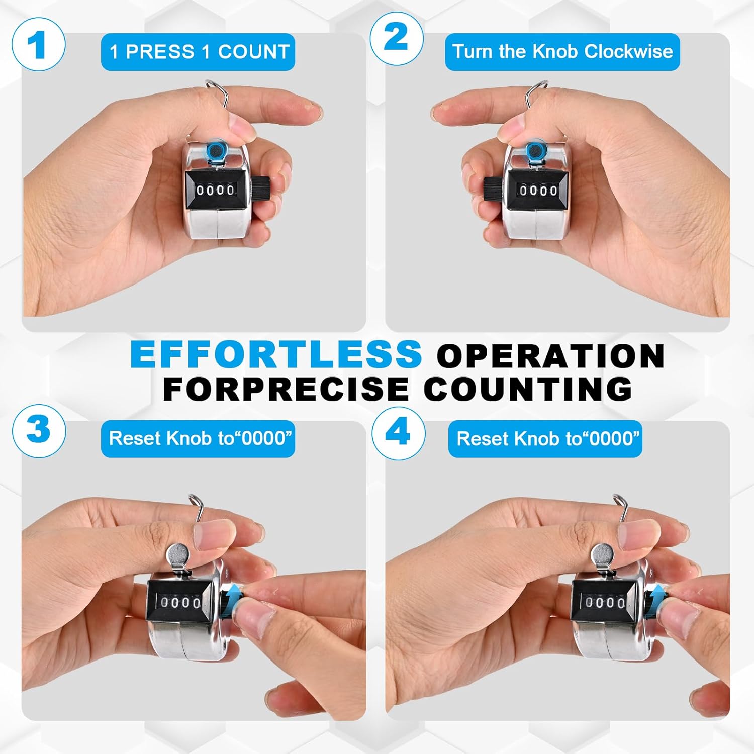 【Good Accurate Tally Counters and Easy to Use】:Good accurate tally counters that can be purchased for a bargain price.Tally counters are Made of metal&ABS plastic,compact,lightweight and easy to hold; Our pitch counter feels quiet and comfortable,No springs to wear out;Smooth surface;The digital clicker can stay securely in your hand.