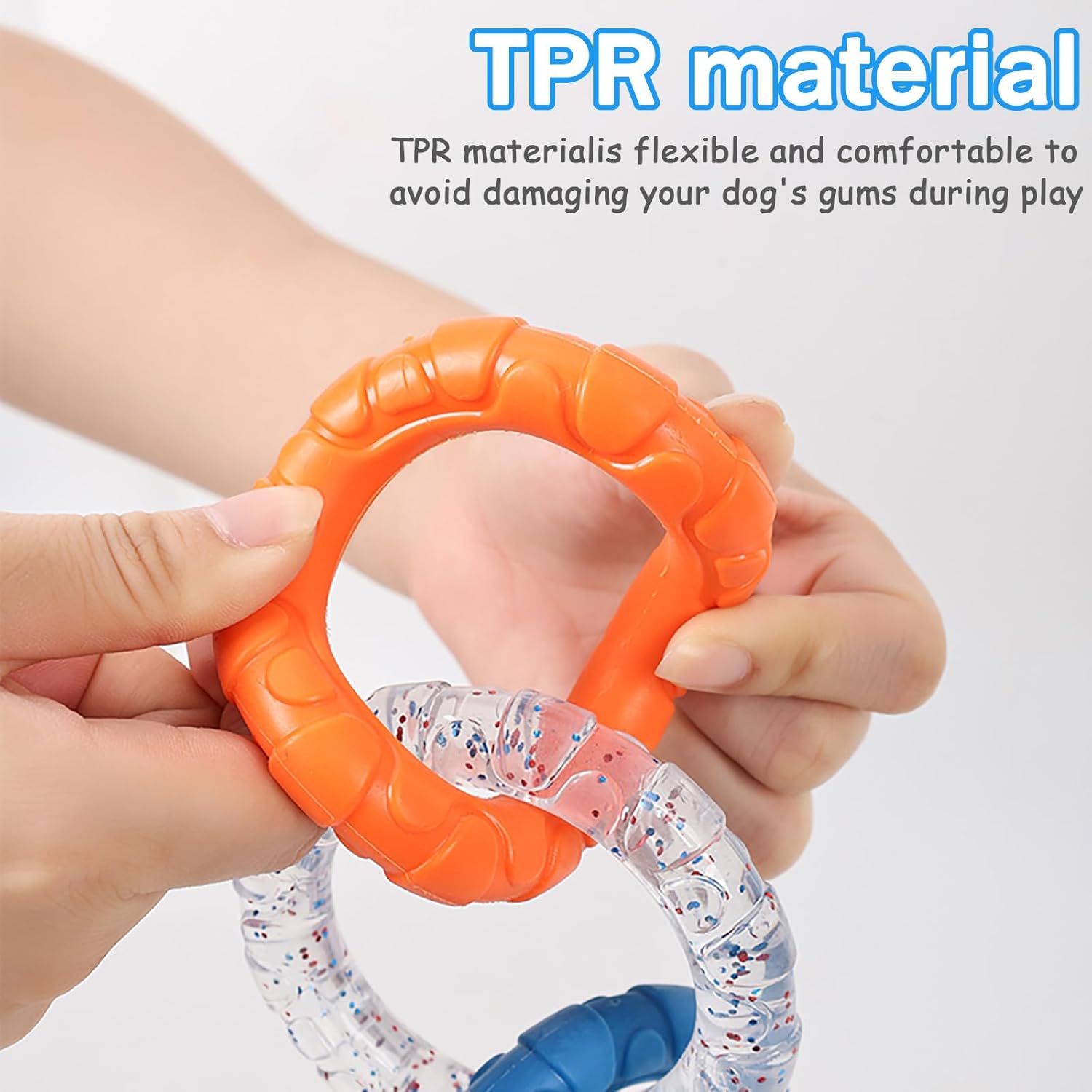 Interactive Dog Ring Toy: Our 3-ring tug of war toys are made of durable and pliable TPR material, which can satisfy your puppy’s chewing needs while avoiding hurting your dog’s gums during play, making them the ultimate choice for interactive tug of war games.
