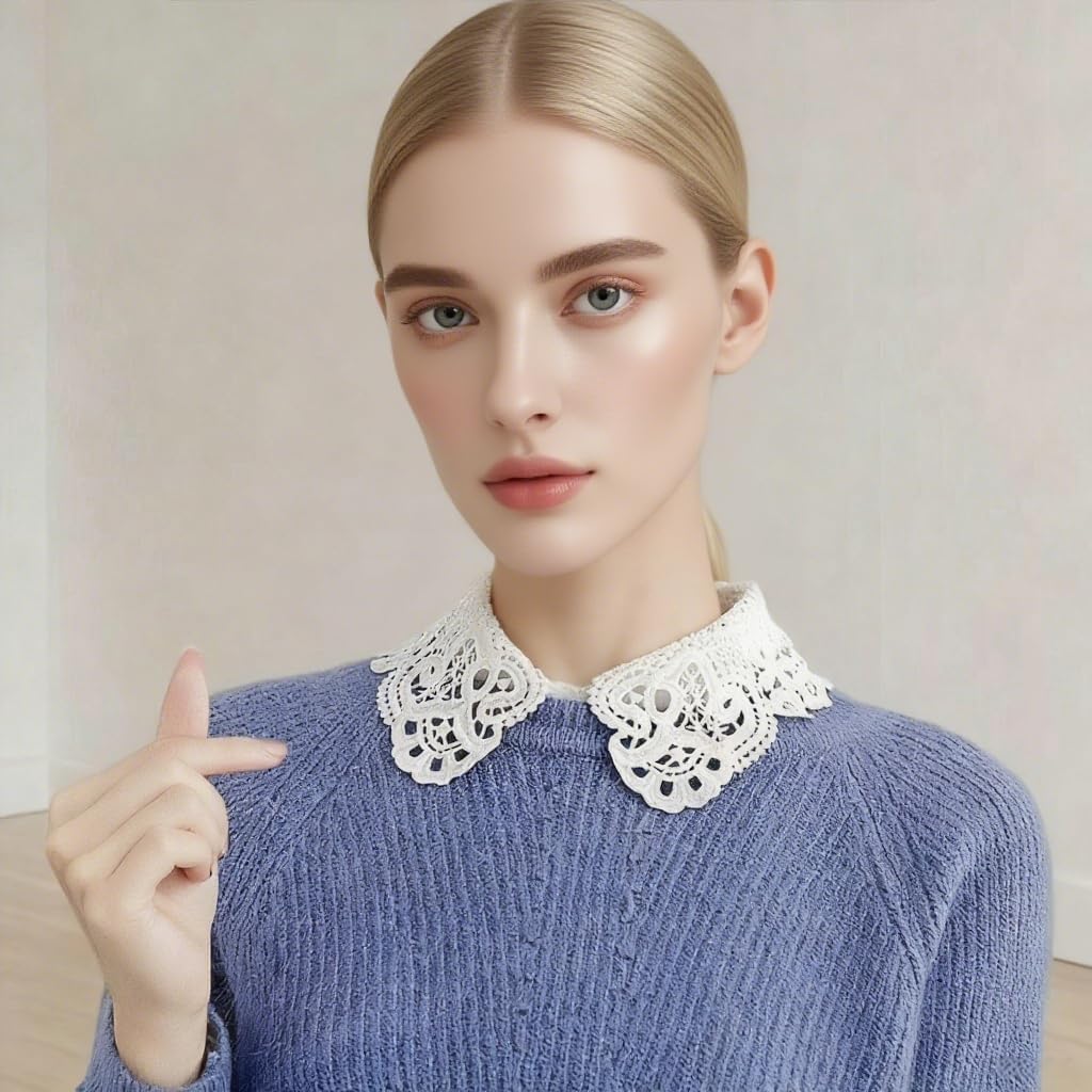 This cutout Peter Pan collar is a beautiful detail piece that makes any outfit look thoughtfully styled. The chiffon fabric is lightweight, breathable, and easy to clean without wrinkling, so I can wear it often without worrying about upkeep. The openwork lace embroidery adds an elegant touch, and the elastic bands on the sides make it adjustable and secure. I’ve worn it under sweaters for work, with dresses for special occasions, and even under a suit jacket for a polished look. I typically wear a size S in shirts, and this fits well. It’s an all-season accessory that works whenever you want to add charm and sophistication without the bulk of a full shirt. Great vale for the money.