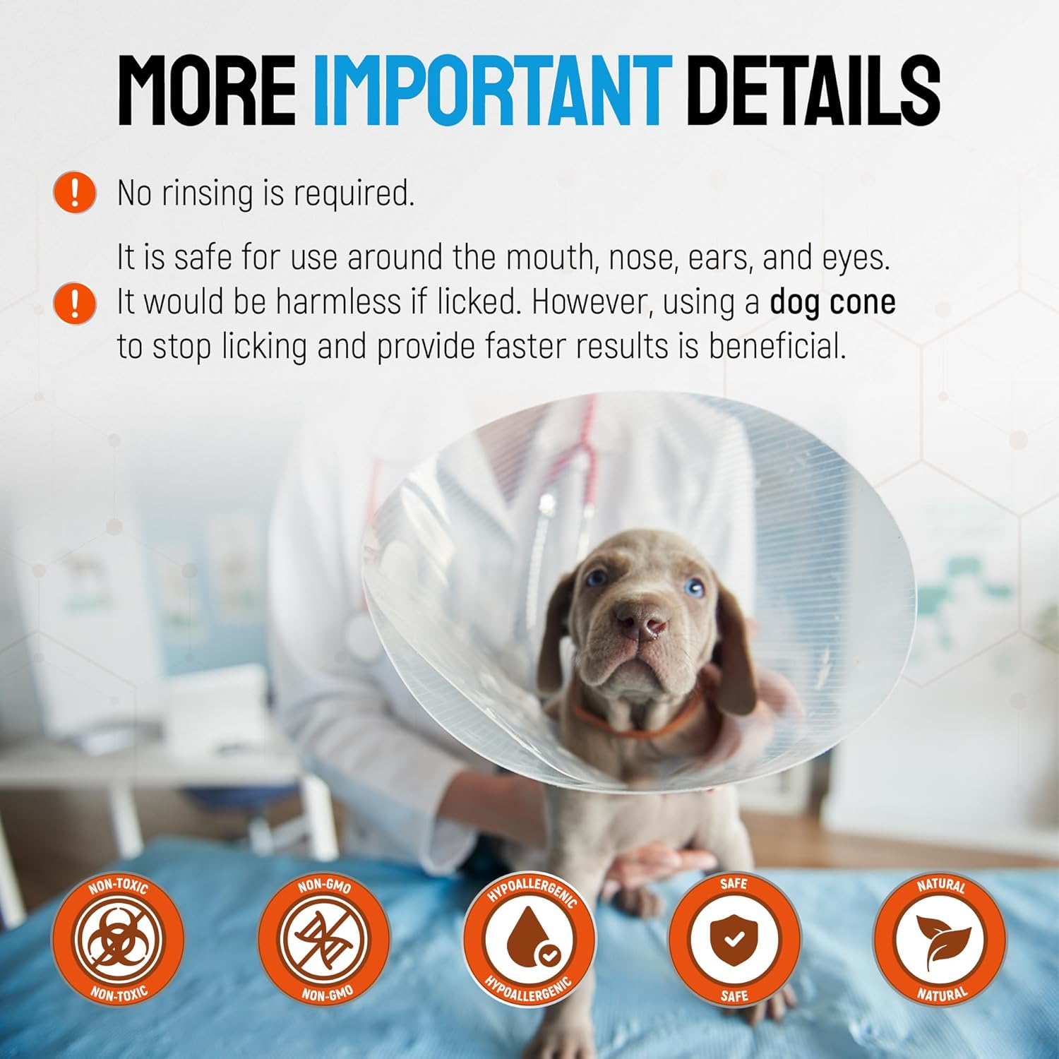 EASY TO USE – Whether for large dog or smaller ones, this hot spot spray treatment for dogs is simple to apply. You can use a cone for dogs to stop licking.