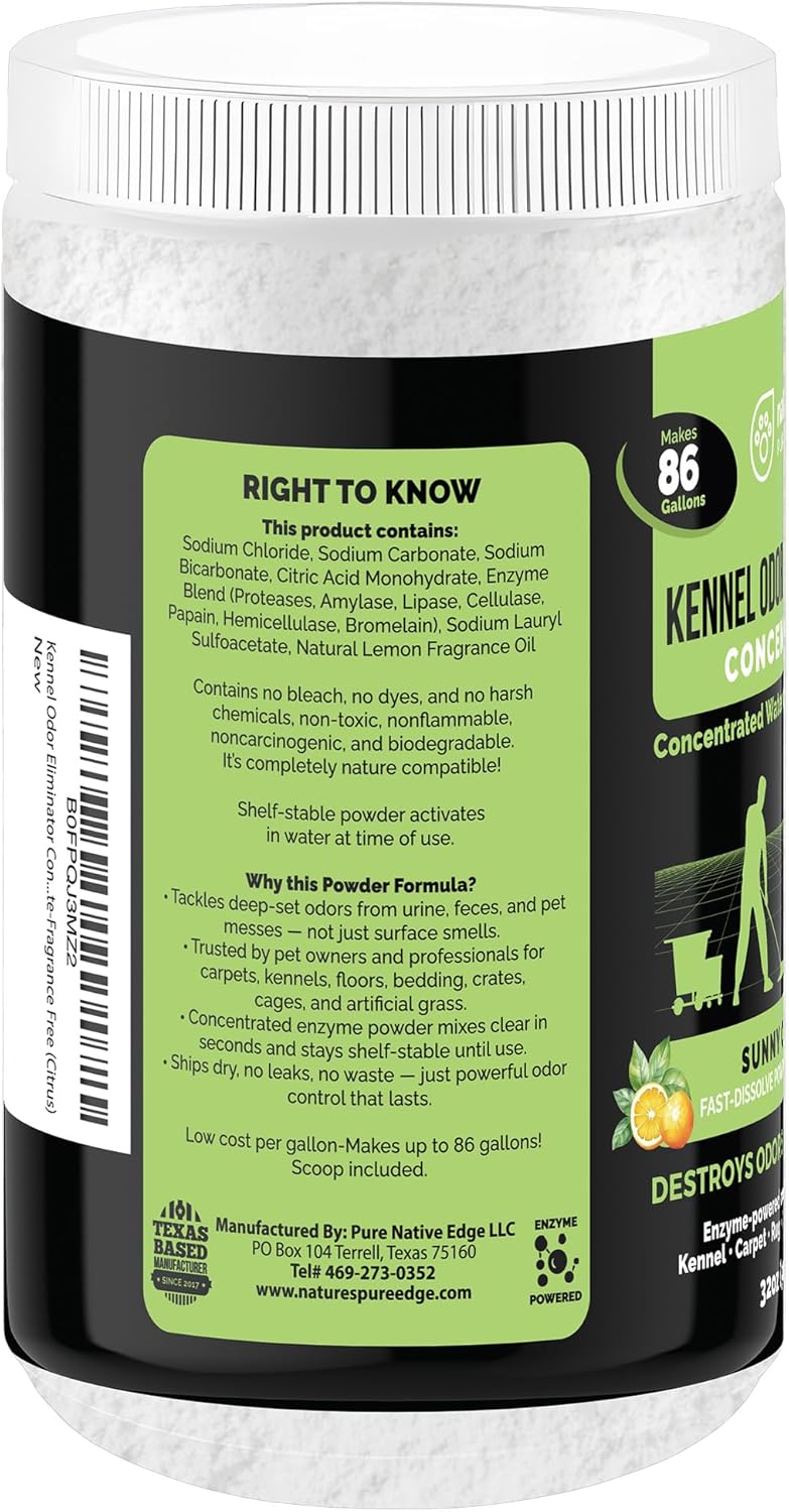 3 reviews for Kennel Odor Eliminator Concentrate – Enzyme Powder for Pet Odor, Urine & Poop – Safe for Carpets, Crates, and floors – Makes 86 Gallons – Sunny Citrus Scent- Industrial Pet Urine Odor Eliminator