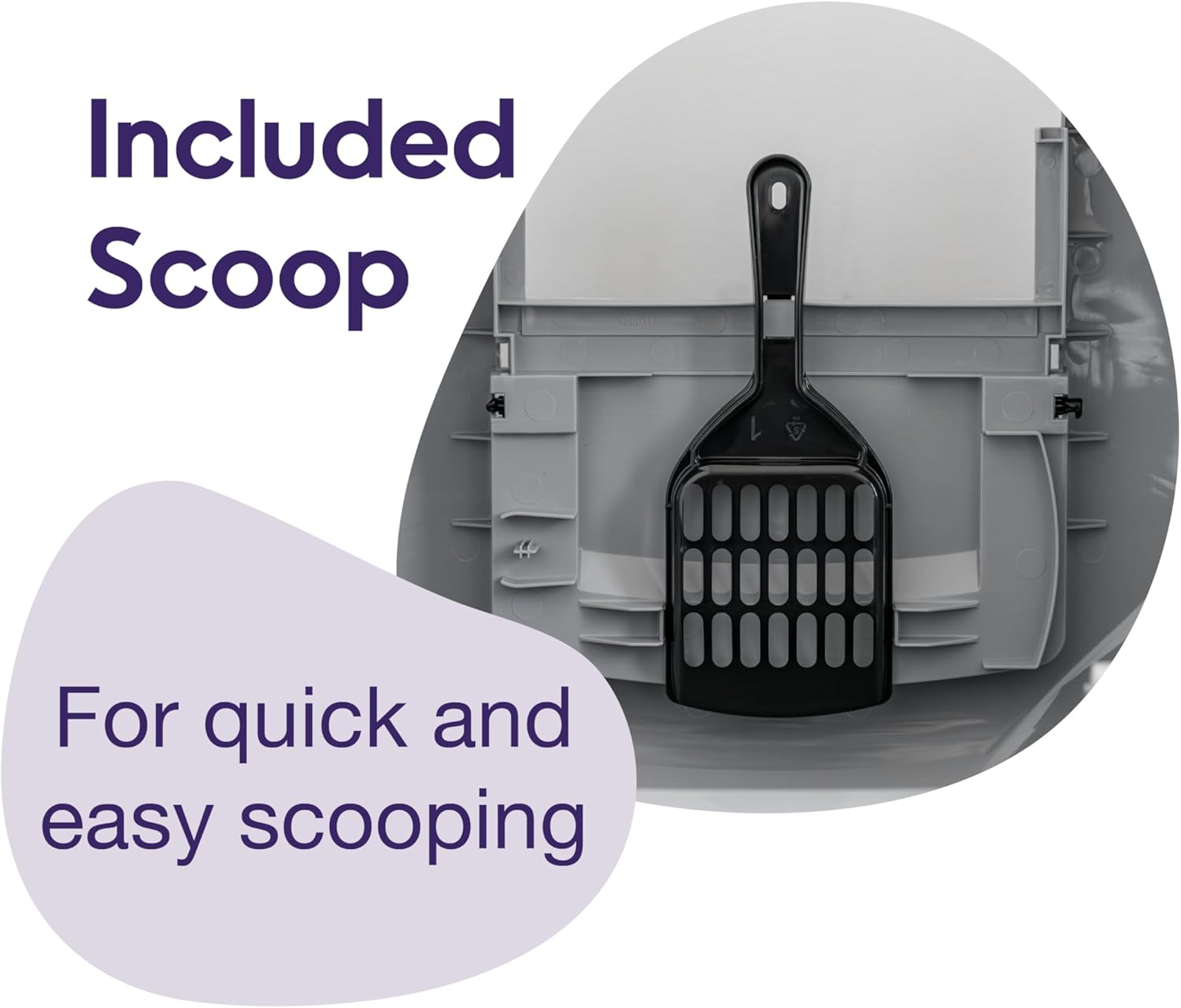 CORNER-FRIENDLY DESIGN – The Litter Genie Litter Box features an ergonomic shape designed to fit neatly into any corner, maximizing space while staying discreetly out of the way.