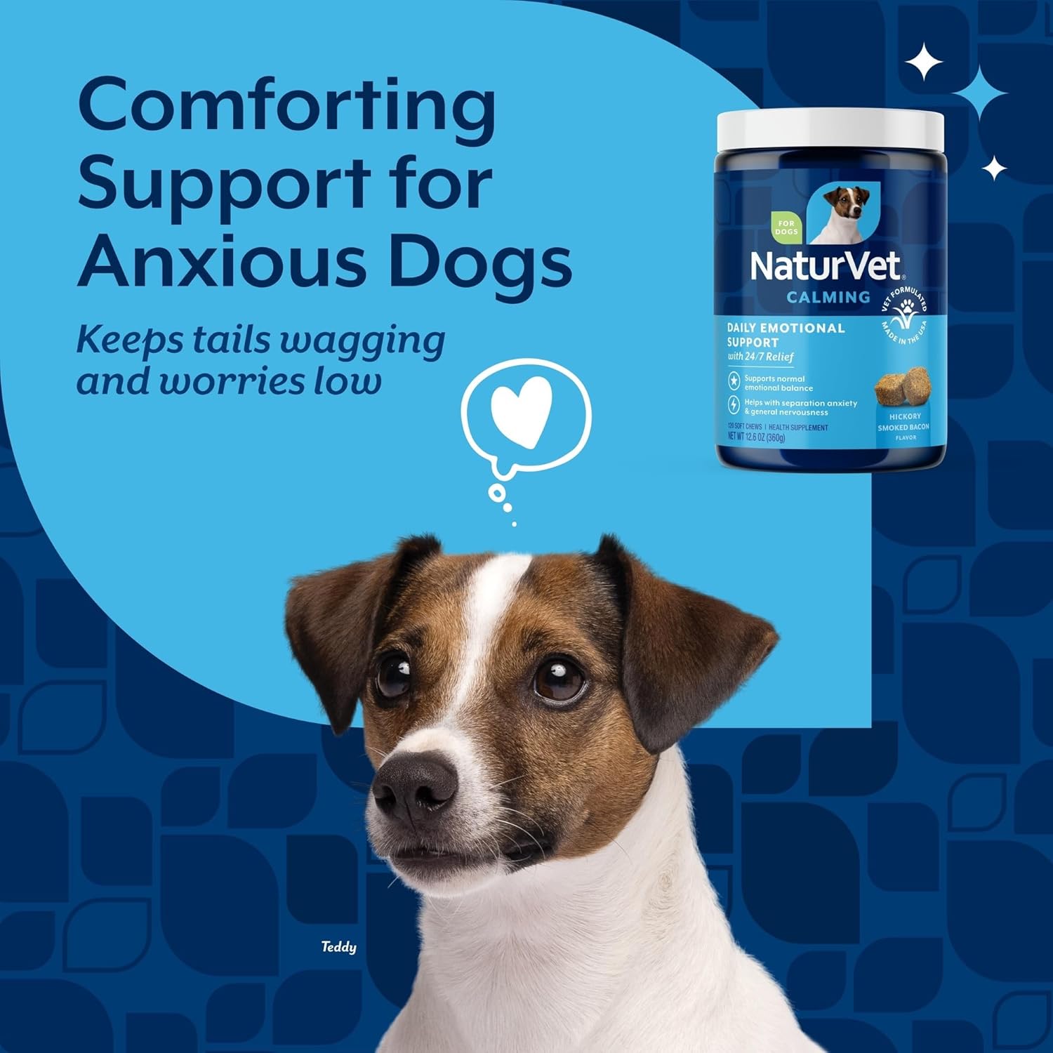 TASTY, DOG SOFT CHEW SUPPLEMENT: These calming dog supplements are available in 120-count soft chews that taste like a treat and are packaged in a re-sealable jar for continued freshness.