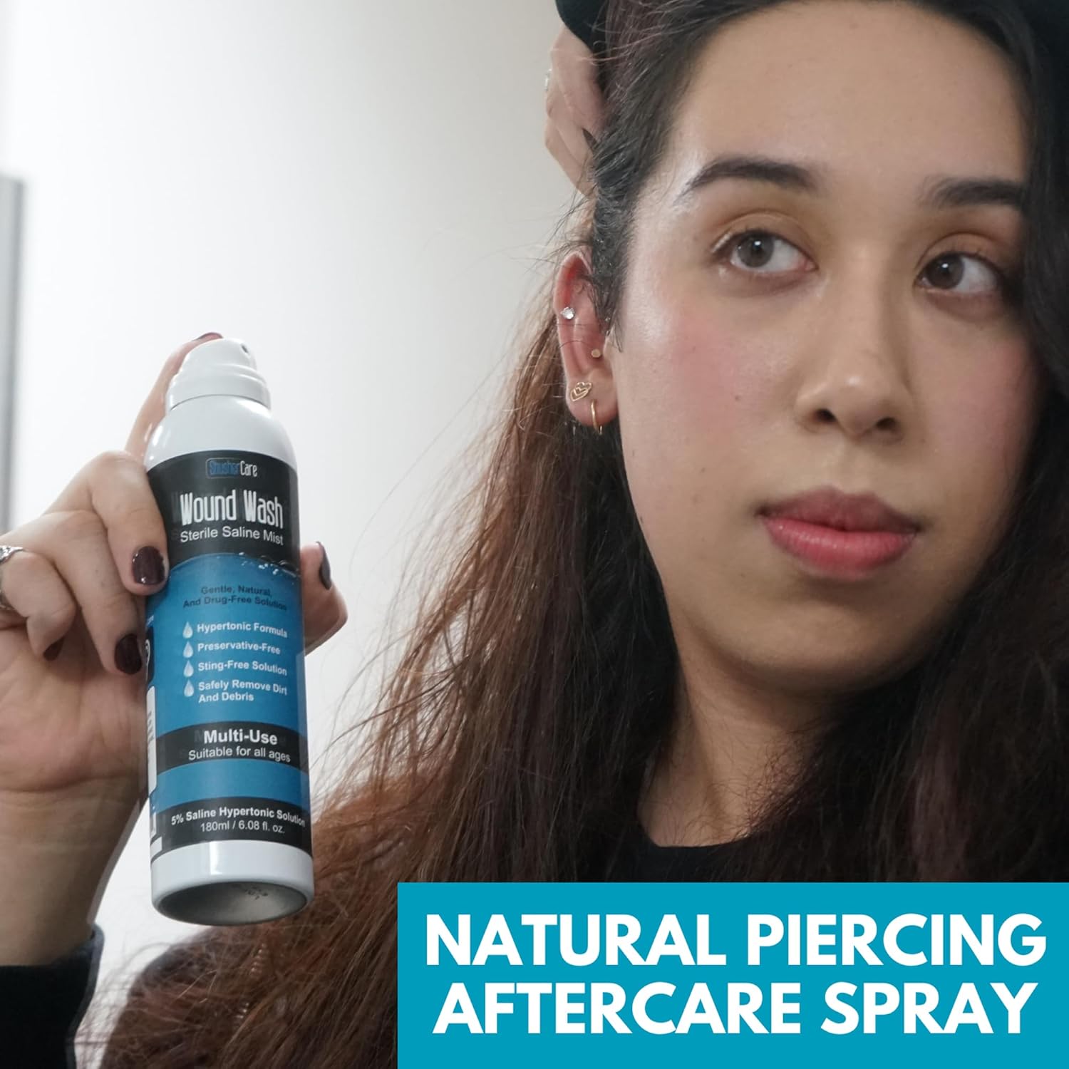 I bought this to prep for my new ear piercings since aftercare can get expensive if you buy the products sold at piercing shops. Most professional piercers recommend a sterile saline rinse and this looked up to that standard. The spray format looked good for avoiding getting bacteria from your hands on your piercings. I’ve been using it twice daily and it’s gentle, effective, and painless.The spray design is so convenient. Instead of messing with cotton pads or trying to pour liquid onto the piercing, you can just spritz it on. I hold the nozzle close and spray. It’s cold and drippy so I do it in the shower after I turn the water off. It rinses away buildup without having to touch the area. The stream is steady, not so much pressure that it hurts. It’s basically as gentle as water, just also sterile and properly balanced for wound care.Pros:Affordable compared to saline sold at piercing studios.Convenient spray bottle.Sterile and gentle, safe for both adults and kids.Multi-use: piercings, cuts, scrapes, minor burns, or just cleansing skin.Cons:Bottle isn’t huge. For wound care, I think it’s fine. However, for piercing care, I’m going through it quickly.If you don’t have new piercings, I don’t know if this is super necessary to keep stocked up. I’ve always just treated small wounds with soap water and antibiotic ointment.Overall, for the price and the versatility, I’d definitely recommend this for piercing care.