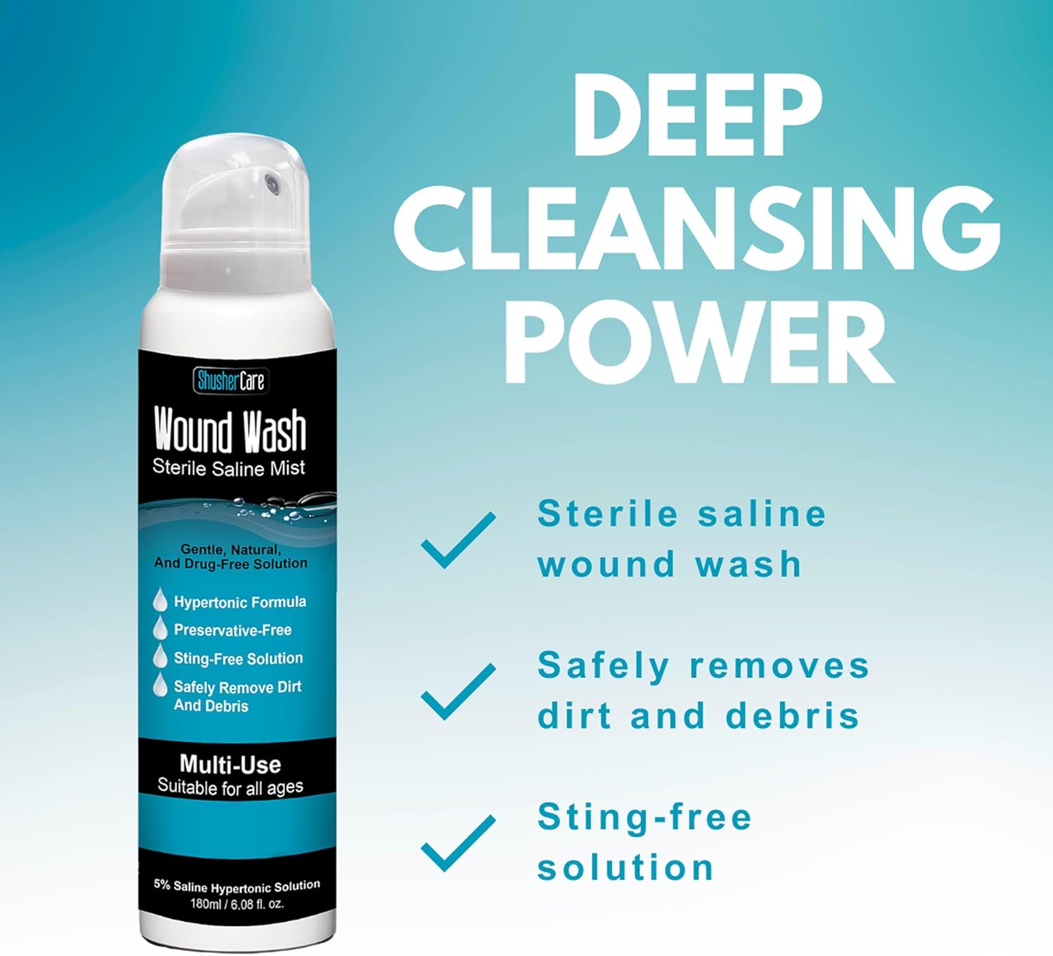 SALINE WOUND WASH AND WOUND CLEANSER SPRAY – Our saline wound wash gently rinses away dirt and debris to cleanse skin and support a clean healing environment for minor cuts, scrapes, and burns